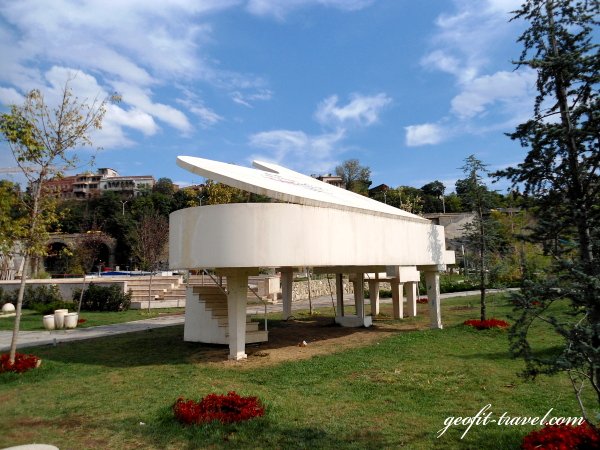 Petit déjeuner. Batoumi – un «Singapour géorgien», la plus célèbre station balnéaire de Géorgie avec population 120 000 personnes. Carte de visite de Batoumi, l'endroit aimé des citoyens et des touristes – Piazza de Batoumi, construite en 2009. En 2010 la nouvelle statue mouvante de l'Amour est devenue un autre ornement de la ville. La statue représente deux figures de la femme et de l'homme. Ils bougent l'une vers l'autre durant 8-10 minutes et en fin de fin forment un corps unique. Tour panoramique de Batoumi: les fontaines musicaux, place des Argonautes avec la statue de Medei etc. En option visite de la Forteresse de Gonio – la plus ancienne forteresse géorgienne à la frontière avec la Turquie. Elle a été fondé au I siècle et servait comme citadelle pendant les temps de l'empire de Rome, puis byzantin. La longueur de la forteresse – 900 m, l'hauteur des murs 5 m et l'hauteur de chaque tour – 7 m. Promenade sur le boulevard principal de la ville dont la longueur fait 8 km. Dîner et nuit à l'hôtel de Batoumi.