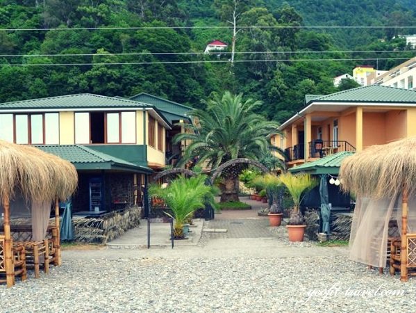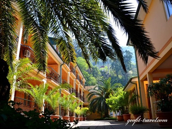 Hotel «Atlantida» Hotel «Atlantida» is located in Kvariati, 3.2 km from Gonio Fortress. It features a garden, a bar and a private beach. It features a restaurant, 24-hour front desk and free Wi-Fi. Room service is available. The hotel serves an à la carte breakfast every morning. Batumi International Airport is 10 km away. Hotel rooms: Double Room with Mountain View (1 Double Bed), Triple Room with Mountain View (3 Single Beds), Apartment with Garden View (Bedroom 1: 1 double bed, Bedroom 2: 3 Single beds) , Apartment with Sea View (Bedroom 1: 3 single beds, Bedroom 2: 1 double bed). Each room has a balcony with mountain views. Air-conditioned rooms are equipped with a flat-screen cable TV, kettle, shower, hairdryer and wardrobe. Rooms with garden views have a private bathroom. All guestrooms at Atlantida have a seating area. Hotel services: