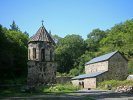 In Borjomi gorge, in the very beautiful place is situated Chitahevsky Monastery of St. George. People lovingly called him "Green monastery" because all the trees in the ravine has different shades of green, as well as the stones of the monastery. All of them are green, but some - the dark and the other - light. The Green Monastery was built in Chitahevi by apprentices of St. Grigol Khandzteli, Christopher and Theodore in about the IX century. Built on the right bank of the River Kura, the monastery complex includes a single-nave church of roughly crushed stone and a bell tower of XV-XVI century. In the XVI century, during the Shah – Tamaz invasions, the monastery was captured by the enemy and dozens of monks were wounded, tortured and killed. The riverbed flowing in the monastery is full of rocks of reddish color, which were called the “bloody stones.” Pilgrims believe that the blood of monks killed in XVI century remained on these stones. It is said that these stones with traces of redness have abnormal healing power – in winter and summer the “blood” of the stones is visible and if the faithful do not pray, the blood is “erased”. A few meters from the monastery later was built the bell tower. It is a two-storey, on the ground floor - a chapel, and the second - an ornate pavilion. On one of the eastern faces, under the arch, the relief image of St. George's fight with the whale is placed. In the 1980’s of the XX century restoration works were carried out, and in 2002 there the monastery was restored.