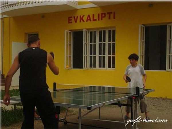 La maison de vacances «Evkalipti» se trouve à Oureki entouré d'arbres d'eucalyptus. Les arbres d'eucalyptus et la brise de la mer créent un microclimat unique et les meilleures conditions pour le repos. L'hôtel est situé à environ 150 mètres de la mer. Sur la plage il y a une possibilité de prendre des bains de sable magnétique unique.