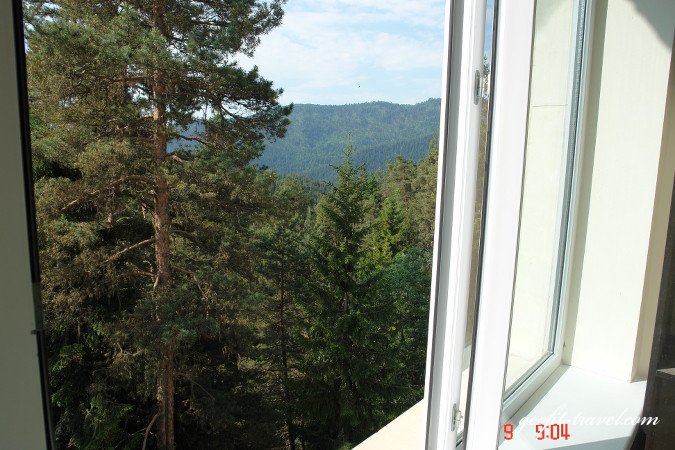 Отель «Абастумани» находится на территории астрофизической обсерватории, окруженный густым хвойным лесом. Отель состоит из двух корпусов: большого и малого.