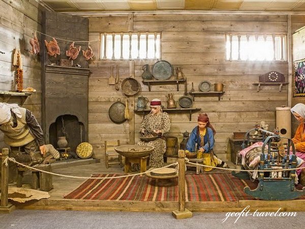 Отдел этнографии. Здесь можно увидеть сундук для приданого, шкаф. Убранство дополняют глиняная и деревянная посуда, деревянные лыжи, плетеные корзины. Примечательна медная тарелка, украшенная арабской вязью. Рядом располагается макет - в натуральную величину! - оружейной мастерской.