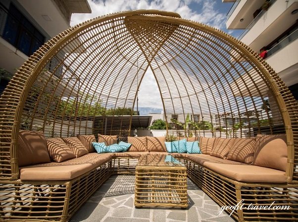 Гостиница «Chveni Ezo Boutiquе» — это отель в городе Кобулети, в 600 м от такой достопримечательности, как Пляж Кобулети. Среди удобств — бесплатные велосипеды, сезонный открытый бассейн, сад и бесплатная частная парковка. В распоряжении гостей отеля с 4 звездами — общий лаундж, доставка еды и напитков и бесплатный Wi-Fi. К услугам гостей отеля — терраса, ресторан и бар. Из окон открывается вид на город. Гостям Chveni Ezo Boutique Hotel предоставляется завтрак «шведский стол». К услугам гостей Chveni Ezo Boutique Hotel — детская игровая площадка. На территории Chveni Ezo Boutique Hotel можно поиграть в настольный теннис. Сотрудники круглосуточной стойки регистрации говорят на английском, на грузинском и на русском. Chveni Ezo Boutique Hotel располагается в 4,7 км и 10 км соответственно от таких достопримечательностей, как Железнодорожный вокзал Кобулети и Крепость Петра. Международный аэропорт Батуми находится в 37 км.
