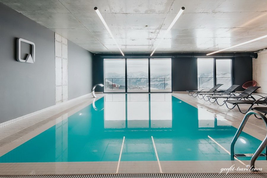 Quadrum Hotel Gudauri - это уникальный бутик-отель, расположенный на высоте 2200 метров над уровнем моря в самом сердце Кавказских гор. Его современная, экологически чистая архитектура органично вписывается в альпийский ландшафт, предлагая гостям неповторимый и экологичный отдых в горах. В ресторане отеля подают восхитительные блюда грузинской и европейской кухни, приготовленные из свежих местных продуктов. После дня, проведенного на склонах или в горах, гости могут расслабиться в крытом бассейне отеля и традиционной сухой сауне. В отеле Quadrum есть уютный зал для занятий йогой с окнами от пола до потолка, из которых открывается потрясающий вид на горы. Помещение оборудовано всем необходимым для занятий, что идеально подходит для занятий йогой, медитации или растяжки после активного дня. Для деловых путешественников в отеле Quadrum есть конференц-зал площадью 56 квадратных метров, оснащенный проектором и экраном. Горнолыжный подъемник «ГудАура» находится в 1,3 км от отеля Quadrum, а горнолыжный подъемник «Гудуари 1» — в 1,6 км. Номера. Из каждого из 21 номера отеля Quadrum открывается панорамный вид на окружающие горы, причем в большинстве из них есть собственные балконы. Номера оснащены телевизором с плоским экраном, собственной ванной комнатой и бесплатным Wi-Fi, что обеспечивает комфортное пребывание.