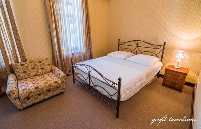 Номерной фонд: 5 номеров. Все номера оформлены в классическом стиле в бежевых тонах. В них установлен телевизор со спутниковыми каналами. Ванные комнаты оснащены душем.